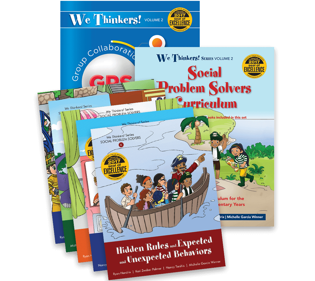 Multiple award-winning We Thinkers! is our premier social learning series for helping children ages 4–7 develop foundational social competencies. These practice-proven, evidence-based materials are designed for both neurotypically developing children and those with social learning differences and/or challenges to strengthen social perspective taking, self-awareness, executive functioning, social problem solving, and so much more. Note: The Incredible Flexible You music album is not included with this set. Find it on Apple Music and Amazon Music to purchase or stream.