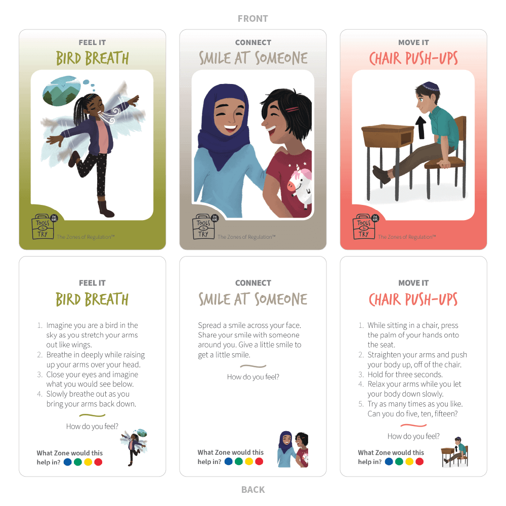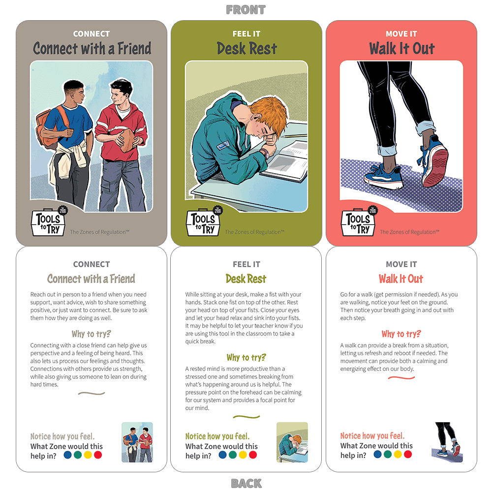 Expand your teaching of The Zones of Regulation curriculum for students ages 5-18 with these two award-winning Tools to Try strategy card decks. These two decks provide a combined choice of 79 different multisensory tools for students to learn and practice as they develop regulation and emotional strategies in all settings.